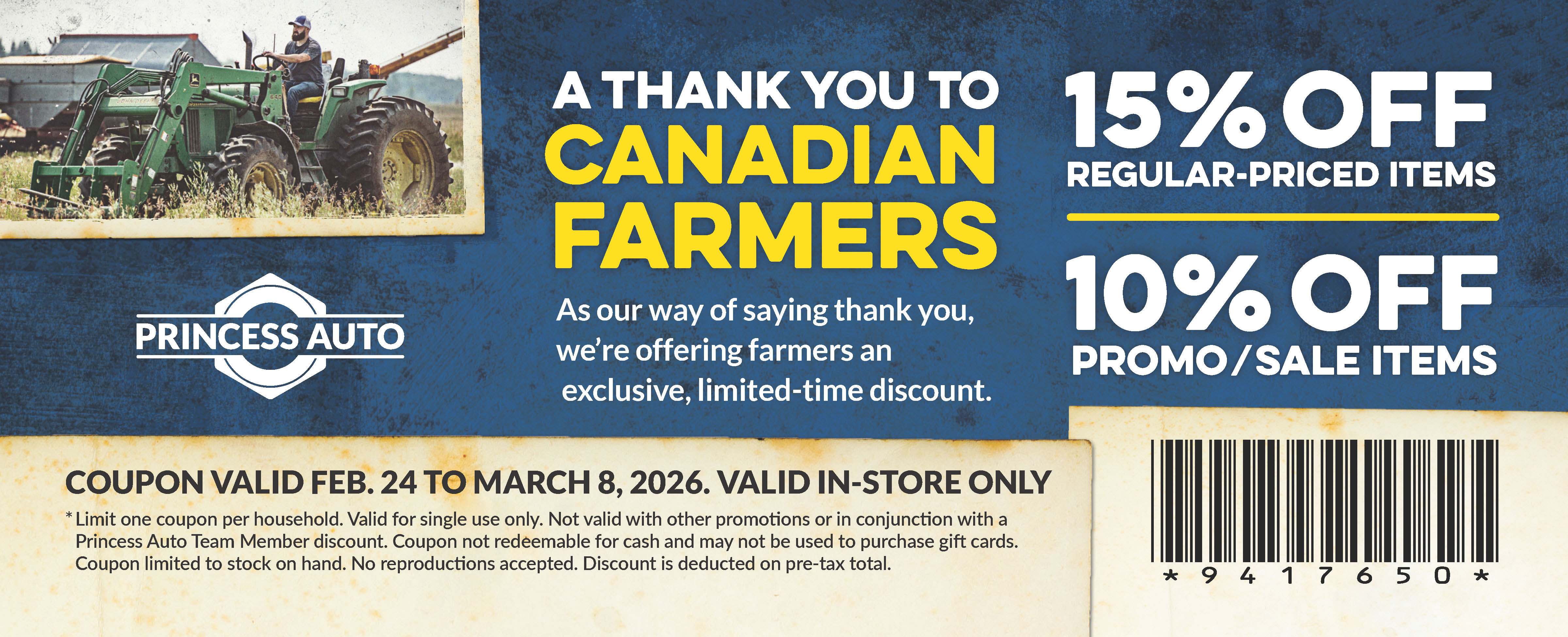 "Canadian farmers have been an important part of Princess Auto’s history since the very beginning. You helped us grow, and we’re proud to support you. Please accept this small token of our appreciation to help you prepare for the busy season ahead."